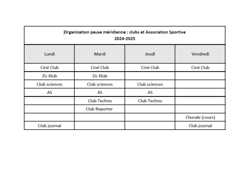 Le collège est très riche d’activités proposées aux élèves sur la pause méridienne :